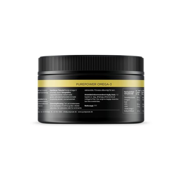 PurePower Omega-3 kapsler tilføjer de vigtige flerumættede Omega-3 fedtsyre, som vores krop ikke kan producere selv. De menes at få kroppen til at fungere bedre, og at være godt for dit hjerte, din hjerne og dit syn.