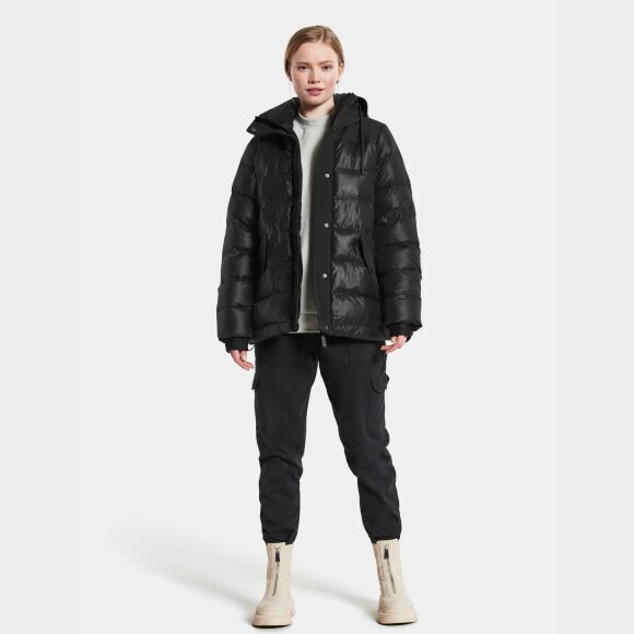 Filippa er en A-formet polstret jakke, vejrbestandig med tapede skuldersømme, hvilket gør denne del af jakken vandtæt, mens resten af jakken er vandafvisende.