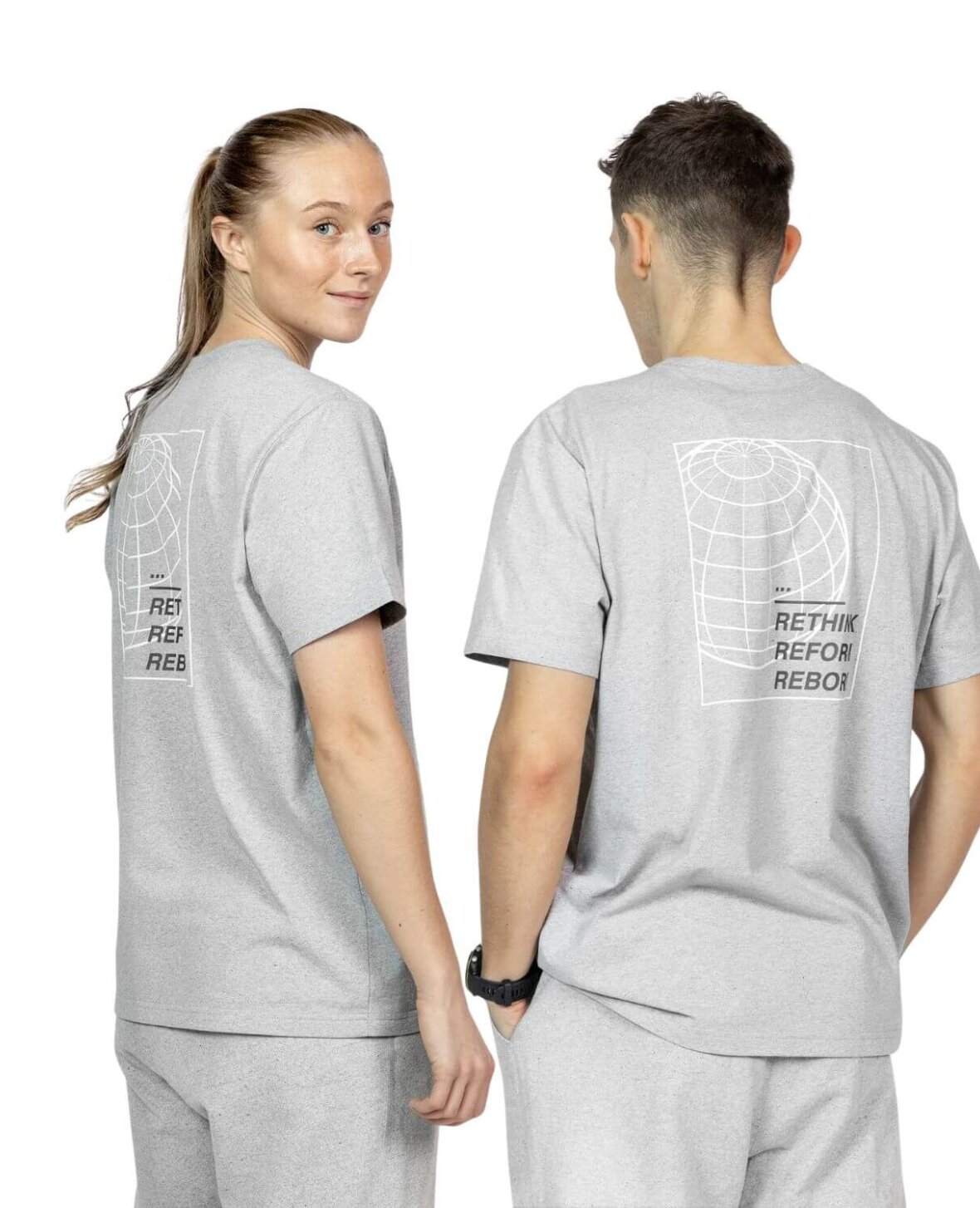 Hver t-shirt er unik takket være det innovative NewRetex-materiale, der skaber små tråde i forskellige farvenuancer.