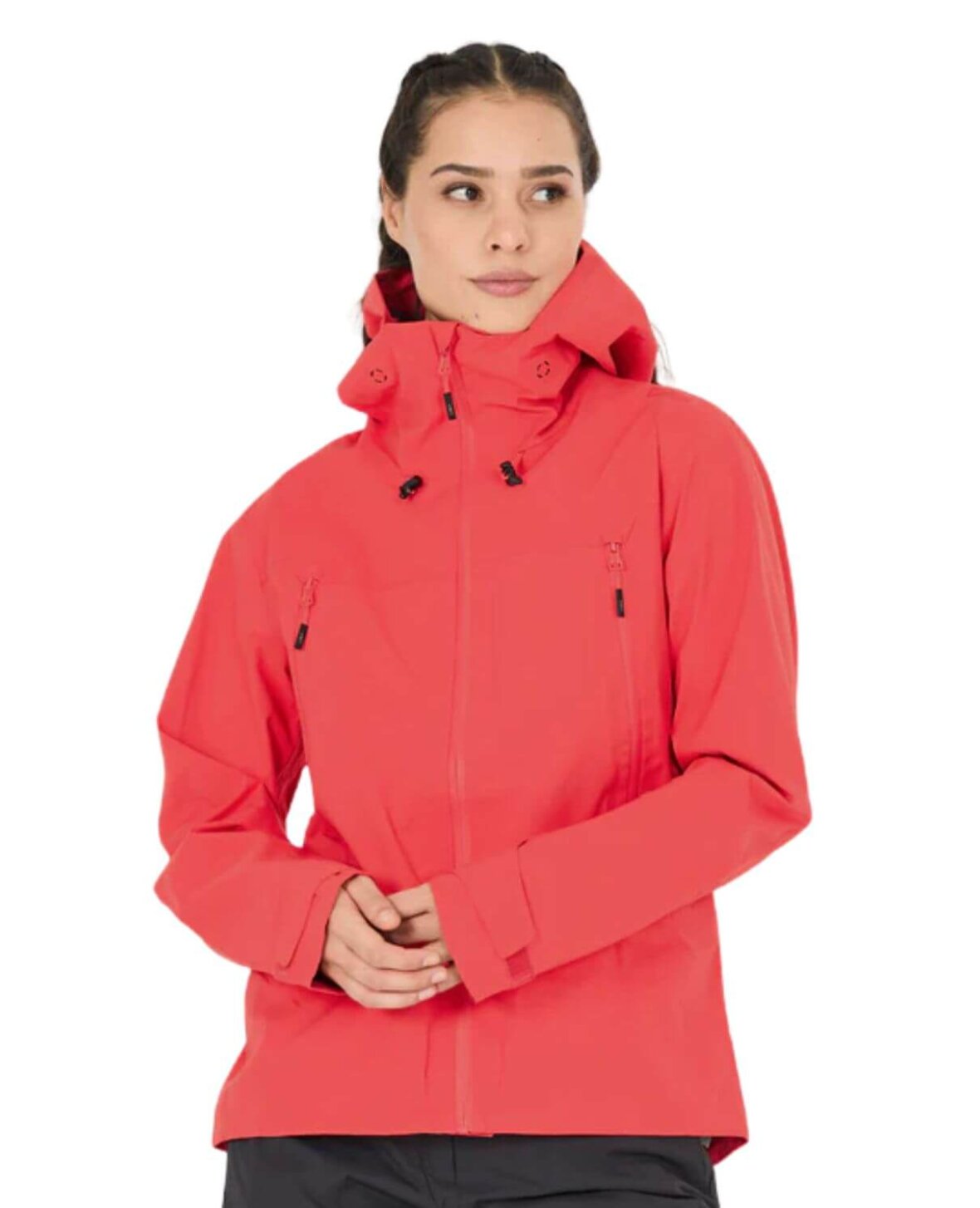 Stilfuld og praktisk damejakke med fast hætte, designet til hverdagsbrug og udendørs aktiviteter.