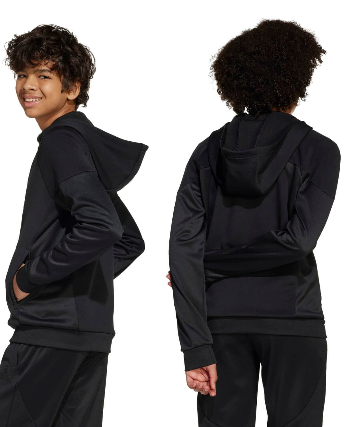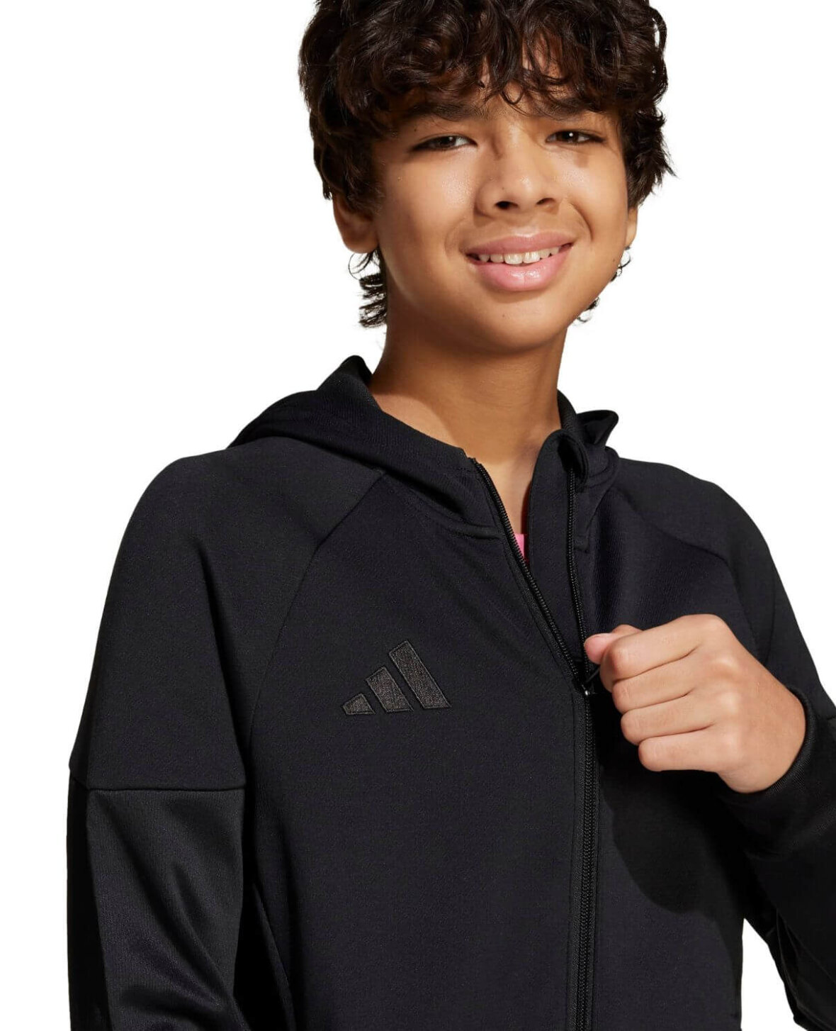 Den har fuld lynlås, oversized hætte og blødt, fleecelignende materiale med AEROREADY-teknologi, der leder sved væk for bedre komfort.