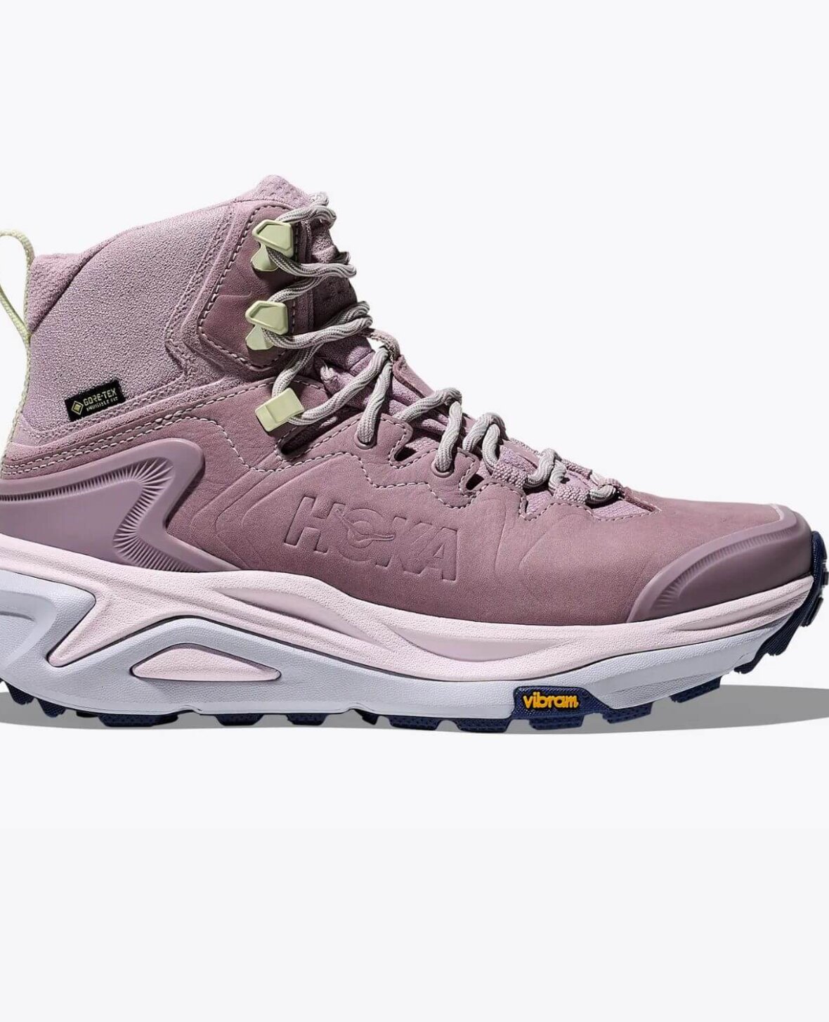 HOKAs første mid-cut vandresko med GORE-TEX Invisible Fit har en slidstærk tåkappe, en akillessenevenlig hælkrave for at mindske trykket og en Vibram® Megagrip ydersål for robust greb i løst terræn.